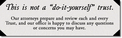 This is not a “do-it-yourself” trust. Our attorneys prepare and review each and every Trust, and an attorney will happily discuss any questions or concerns you may have.